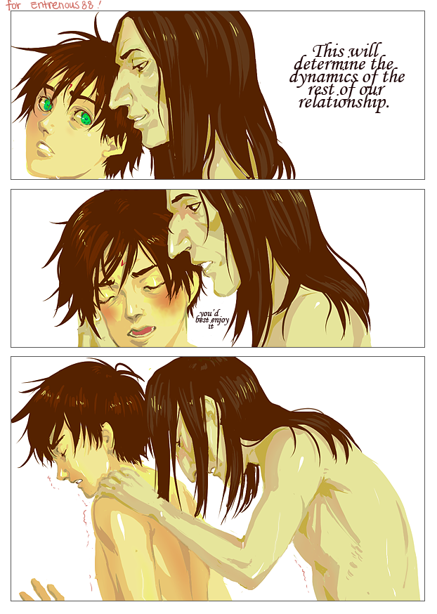 My folder for this fandom is sadly lacking. So! Harry Potter! GO!... bonus points will be awarded for Snape/Harry. because Snape is such an effing queen.