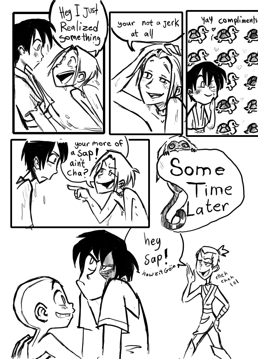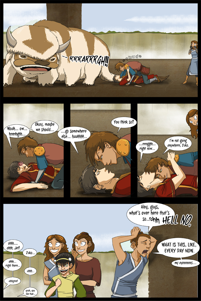I'm looking for a specific pic by boredgods/resemble. It's a comic where Zuko uses the phrase "The Earth King has invited you to Lake Laogai" to Jet who then starts to take off his clothes. Any help on this would be appreciated