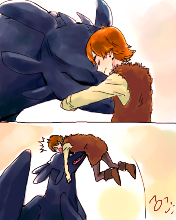 it's really a shame that the artist didn't bother to incorporate any of toothless' actual character design into things, he basically looks like any other random animu dragon dude. i'd never recognize him if i saw that out of context.i think reirei still wins for my favorite human!toothless, even though he isn't all the way human.