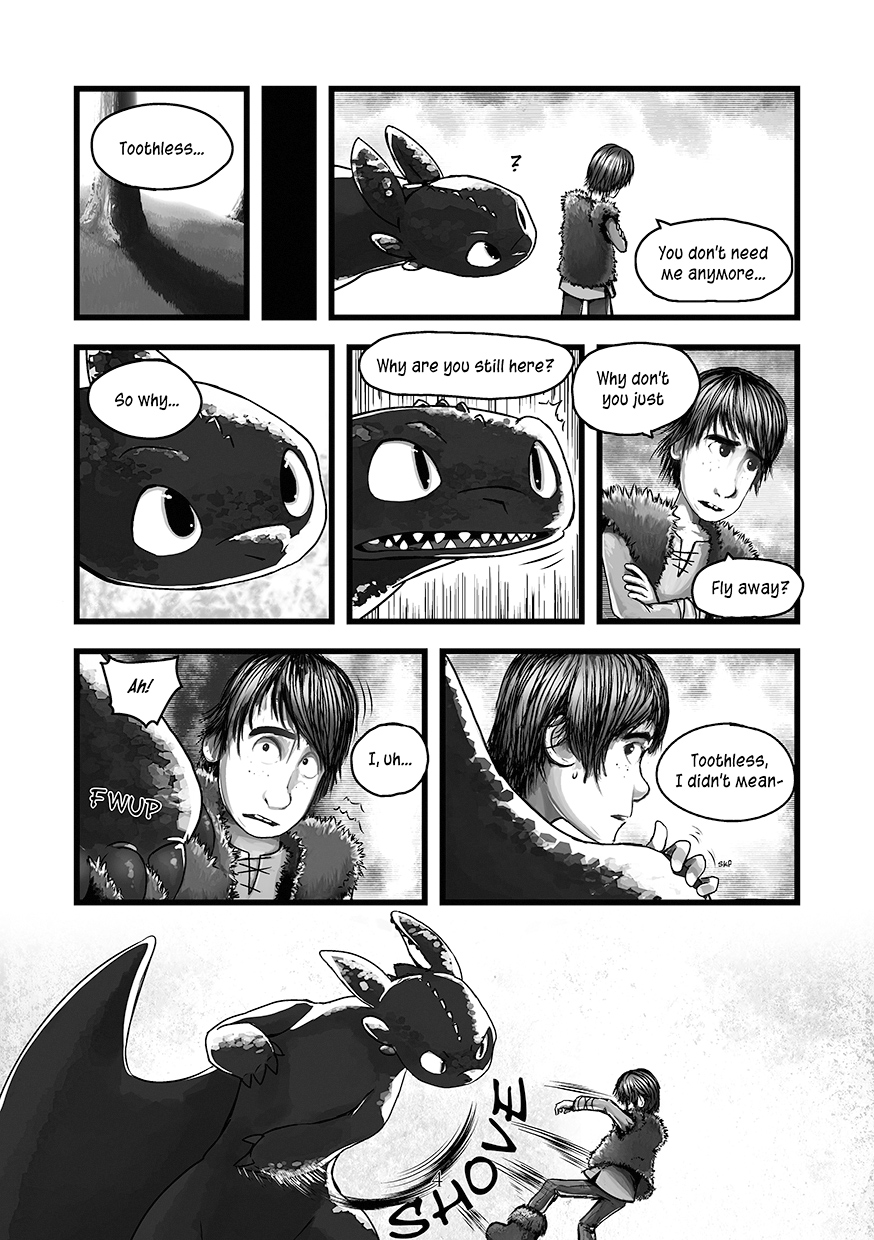 >>53426 - Not even we upload more?He was packed by first light, his rest had been fitful at best, but he had a friend to find. He couldn't be afraid of Toothless forever; he wouldn't. Not after everything they'd faced, there had to be some way to bridge the gap between them, they'd lost enough time already. With the basket over his shoulder, Hiccup marched determinedly to the door. At his touch the wooden slab swung inward and he backed out of the way. Filling the frame of the door was the bulky shape of Berk's Chief, his own father."Morning." Stoick boomed, before claiming his seat at the table. The furniture wobbled, but held firm under his hands. Belatedly he noticed the woven strap over his son's shoulder and the pensive look in his eyes."What's this?""I'm going hunting." Said Hiccup, his voice implying he wasn't too sure himself."There's not trip planned today." The chief remarked confused, but curious."I'm still going." Hiccup responded."What about the devil?""No," Hiccup laughed almost nervously before answering, "I'm going alone.""By yourself?" Stoick inquired setting his helm down."That's what alone means."Chuckling heartily, the father commended his son, patting his back firmly, a little harder than Hiccup expected before thrusting a sharp knife into his hands, urging him on his way. Tucking the blade away, he reshouldered his pack and allowed his chief to escort him from the house."It's good to see you acting like a proper Viking, all that flying must have done you and that reptile some good. No more moping about like a landlocked pirate."Whether it was an observation or an order, he didn't care. Bidding his village farewell and promising Astrid he'd be back on three days or she could come looking, Hiccup started into the forest.The cove was empty and placid, with nothing. There was no hint of his quarry in their secluded spot. There were a few terrors basking in the sunshine, but they paid him no mind as he marched away. The bright little creatures were certainly not the dragons he was looking for. Slowly and carefully, Hiccup combed, searched and explored through every place he and his dragon had ever been. From the spot where he'd freed the Night Fury from his trap, to the fields of garlic grass around the lakes, and even the winding streams that lead down to the sea. Only on the far end of the Isle did he finally find what he was looking for, among the stone steps of their usual fishing spot were deep clawed grooves and a sunken circle of burnt sand. Setting up camp in the cool sand, Hiccup turned his gaze seaward and settled down to pass the time.The wait wasn't long; just as he was beginning to doze actually. The final rays of sunlight threw the shadows of the slinking dragon across the sand as he returned to his nest. Descending along the rocks Toothless strode to the burned circle and inhaled in preparation for sleep. He did pause to look at the figure who'd dared to intrude upon his sanctum, but merely snorted once at him, ears flicking in irritation. Wrapped in the soft furs he'd been smart enough to bring, Hiccup smiled encouragingly in return."I missed you too."With a careless huff, Toothless scorched the cooled ground in a blast of blue fire, widening his space, laying claim to more of the beach."You keep that up and you'll have to sleep on glass." The human warned him.Still sulking, Toothless ignored him and settled onto the glowing embers, using his wings as a buffer. That particular tactic had not stopped Hiccup the first time he'd tried to befriend the reptile nor would he let it stop him now. Tossing some fish he'd set aside in case his dragon had appeared, he settled back to cooking his own meal to the sounds of lapping waves. He ate silently, huddled within his furs, trying to keep warm as he watched Toothless out of the corner of his eye. It seemed that he hadn't moved, but the pile of fish was smaller than before.Laying back Hiccup stared up at the darkening sky, watching the stars, the few that could be seen. Before long, he rolled over and damped the fire. Satisfied that he wasn't alone, he unstrapped his prosthetic and tucked himself back into the nest of furs listening to the rising sounds of night. Over the hiss of dying flames, the steady breathing of the sleeping dragon upon the dark sand lulled him into sleep; his eyes were barely shut before he began to dream.The breeze coming up off the sea rippled the furs, chilling the body folded within. Hiccup squirmed restlessly to the howls of nocturnal dragons. The dissonance only worsened his disturbed sleep, already plagued with shadowed shapes of lightning and death. Venom eyes and sharp teeth flashed overhead before descending to kill. He opened his mouth to shout but all that came out was terrifying roar.
