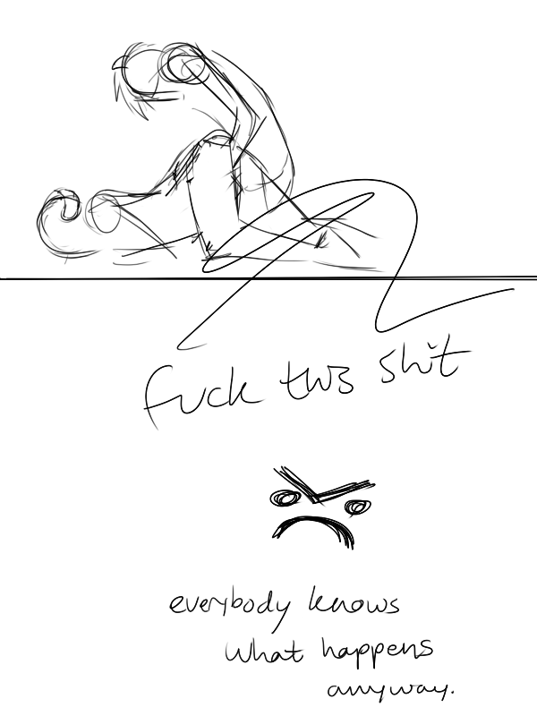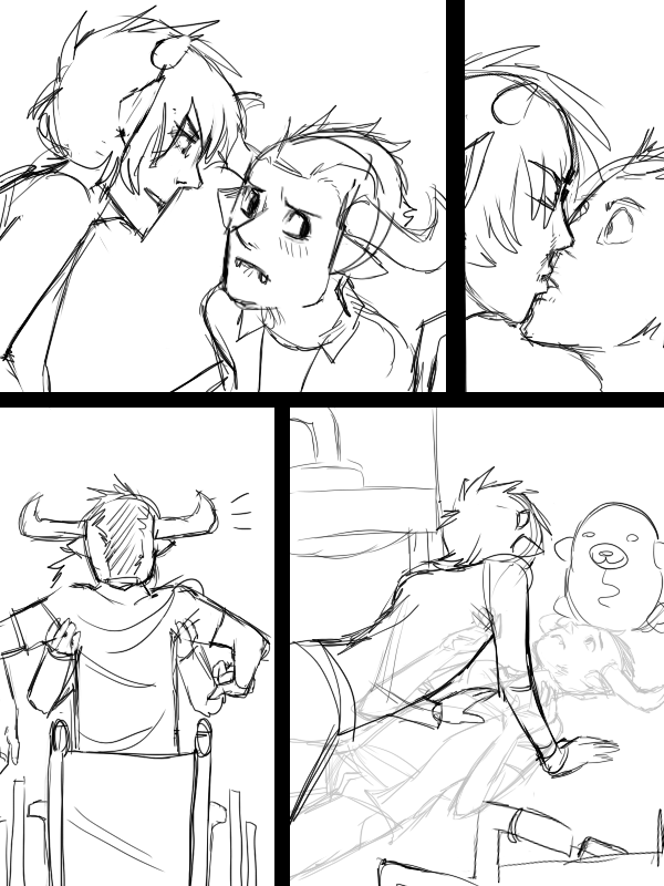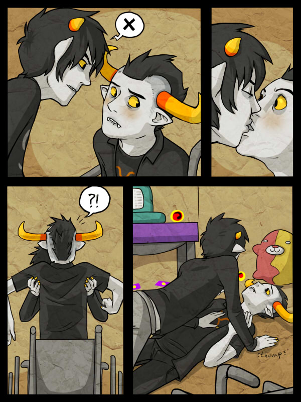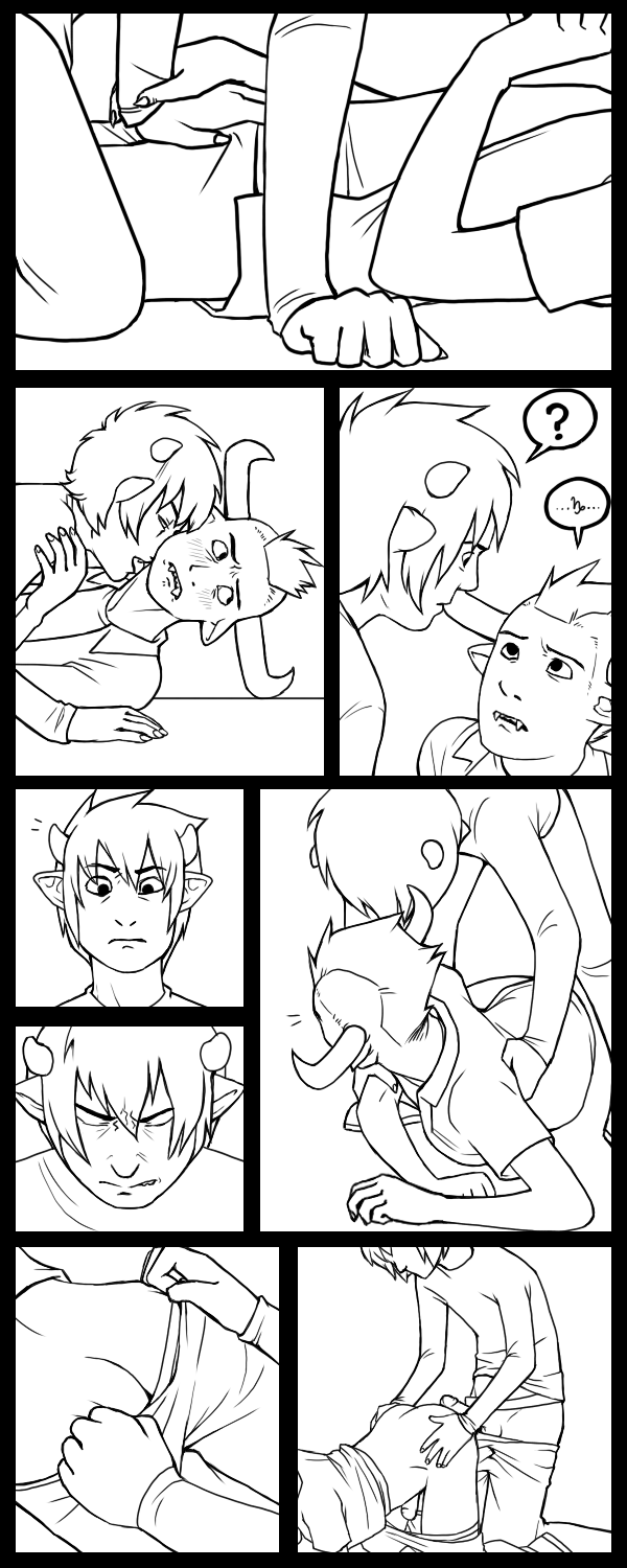 Page 3 of this god damn comic KIND OF I GUESS.So basically, it was going to be Karkat fucking Tavros roughly because he's a dick, then feeling guilty and doing it slower so Tavros can feel nice too.Fuck this shit, I do not want to draw it anymore and I'm not spending another day on it. Lesson learned: don't waste all my energy working up to the buttsex.