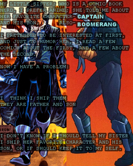 So, is there any porn of the rogues that aren't Pied Piper or Trickster?Also, ever since reading a secret about it on Fandom Secrets, I've wanted to see some Captain Boomerang/Captain Boomerang Jr slash.