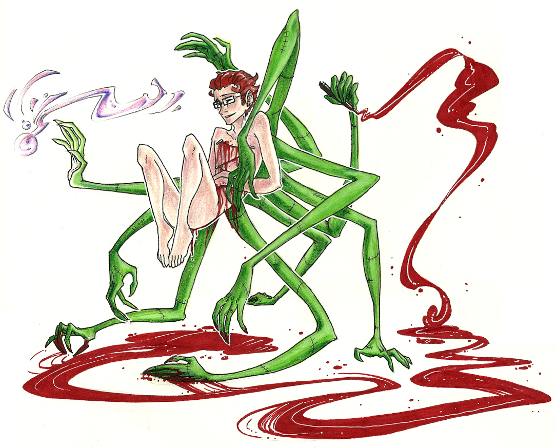 >>50714Lascaux, who specialises in the strange and horrific, put up a series of pictures of Hanna with strange arms growing out of his back, starting from one quite elegant and disquieting pic where Hanna's in full control and the movement of the hands appears to reference Hindu paintings. But then it moved on to sketchier pics, with more and more hands, and the things steadily out of control.And then ages later ZiggyStardust wrote a fic based on the images.And now ages later we have a fresh creepyhands image- but this time in full colour!