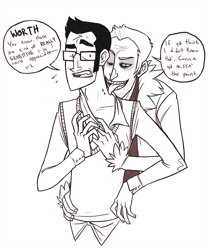 >>50680Ages ago, somebody started a fic that had Zombie accidentally cutting off some fingers while making dinner, and having to go to Worth in the middle of the night to get them sewn back on. There was some witty banter and it was totally gearing up to sex, and I (even being a diehard Z/H shipper) was so ready for it. Never got finished. This Zombie/Worth suggestion sounds fantabulous so somebody please run with this. <3>>50698Fanart of fanart? We are one incestuous community. <3 I... kind of love that about us though. Also the arms thing is still so hnnng I just don't even, and I still can't figure out why.