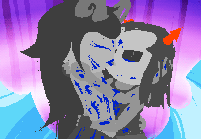 >>50996First off, thanks for getting it back on page one.Secondly, this is chest-achingly sweet. I saw this on the fora (while it was still working for me) and I was going to comment on it, but the servers keep flippin' the fuck out. Seriously though, the detail is wonderful (especially, almost weird to notice, in the ear) and Tav biting his lip... it's rather lovely. Also, is that some Gamzee sans make-up? It looks like it. (Which would also be fine by me.)(On a side note, I swear I'll have some fic written soon. All this fora business combined with the clusterfuck that is Clusterstuck has been dogging me down.)