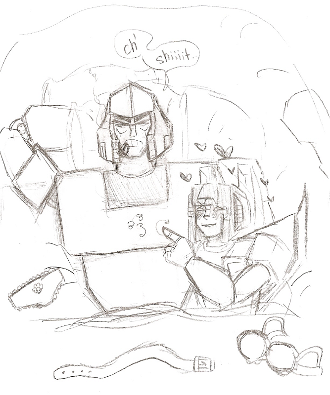Some movieverse Ratchet/Sunstreaker.I might get around to colouring this at some point.