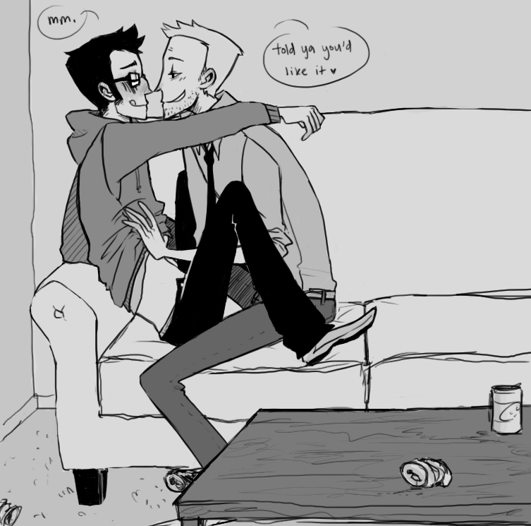 Well. I lied. I have Internet, although it's ridiculously slow.So, while, I'm here, I'll just drop this in...It's shitty and I'm being an asswipe since I'm in a terrible mood, so I'm not going to edit it, so you can JUST DEAL WITH ALL THE ERRORS. ♥Enjoy your porn.----------------------------------------------------- It was just like every night. Typical as usual, Casimiro was out late into the night, probably trying to pick up a good lay and a good bite all together. This left Finas at home alone while he waited for the other vampire to come back home before the sun would rise. it wasn’t that Finas minded at all, but he had read somewhere in some book he probably read some time ago that it wasn’t wooden stakes that killed vampires, it was all the emotional baggage and letdowns that they had to carry around for century after century, and, nowadays, Finas couldn’t agree more, especially with the tedious nighttime rituals beginning to build up in Casimiro that were beginning to get on his nerves as well, although he wouldn’t quite come vocal with it. It wasn’t that Finas entirely minded, it was just a little lonely t be at home while Casimiro was scoring himself some fun and racking up the tallies as they came - pun not intended - and the feeling as beginning to feel at home with him again, that somber loneliness. Finas sighed and shut his book, setting it down as he pinched the bridge of his nose. It probably wasn’t entirely a good idea to try and read with the bloody lights off, but he didn’t wish to turn them back on and the glittering lights outside the windows that echoed in from their city was plenty enough for him, as well as with his enhanced vision from the vampires’ “blood” in his dead veins. He looked out at the lights that filtered in through the windows of their penthouse suite, some lights going out and others flickering into life; he was practically entranced, until the door clicked open and shut once more, trapping the light from the hall of their complex back out again. He could feel the air grow tense and heavy with another vampire’s presence and he could tell it was Casimiro. A rather irked Casimiro. Finas turned about-face in his seat, looking back into the darkness to catch the tall, lean figure of Casimiro shifting through the shadows, hear the stream of curses that fell from his lips. Then, in a second of a quick flit towards him, Casimiro was standing next to him, and he could hear the faint crackle of his skin as he emerged out of the shadows, flesh sizzling and slicing itself out of his existence as his humanity slipped just out of his reach. In the next instant, the vampire was in front of him, low and gutturally feral growls escaping between needled teeth. Finas stared up at him as the other vampire looked down at him, staring straight on. “What did you do?” Finas asked with a raised eyebrow, and in the next half a second Casimiro was on him, pushing in between his legs with a huff of breath laced with sheer anger. “She fucking denied me,” Casimiro said, although in a voice so feral and forgone from real consciousness that it came out in growls of consonants and vowels drawn out over pops and crackles of flesh. “Said, she’s ‘not that kind of girl,” he said, his head giving an involuntary twitch to the side, skin searing. Finas sighed, realizing that that was just like Casimiro, to get stuck on a single victim, so involved and then dropped off in the next moment. She went far, but not far enough. He looked up at the dark skin that was burning its way to a pallor, and already there were bruises, heavy and dark, waiting on both skins. “Then her husband…” he trailed off, mouth growing wider and lips curling upwards, inward, to reveal those teeth that could rip through flesh and bone like butter, that Noseferatu face that was replacing that nearly chocolate skin that let out growls of anger in rasps, those fingers that were tapping, scratching his shirt, his skin and the chair, growing long and sharp and cutting through. “Watch yourself, Cas,” he said softly, and the nickname itself being uttered by him seemed to calm Casimiro a bit, the pallor of the blistering, burning flesh retracting momentarily. “No, no,” the taller said and the white flesh came back with a growl of ripping an built-up madness, crawling more onto Finas and settling down in his lap. Finas didn’t realize for a while, but his hands were on the other’s hips, probably out of a long-since perished habit from his own legitimate humanity, and in a moment awkwardness upon realizing, he removed them from their perch, eliciting a disapproving growl from the Italian. “I need it.” It wasn’t anything but a command. In a quick second, Casimiro shook his head and the sparks of pale flesh fled for the most part, leaving behind mostly tanned flesh once again, although that smirk that the skin usually held was simply a long look of anger, teeth barred and sharp. He could see the bruises along the skin, heavy and purple. Then, in the same moment it happened, the skin sizzled back into life, and Finas slowly raised a hand, ghosting gentle fingers across where the bruises were, darker on pale loss of humanity, the skin turning back to its tanner self after his fingers touched the spot, right under his touch, and the taller vampire closed his eyes tightly closed his eyes and arched his back, letting out a needy groan, but also one of pain. “Finas,” Casimiro whined out after the quick moan, the vowels of his name dragged out long and begging. Finas knew the only thing that would fix the pain, and with a sigh, he relented, feeling Casimiro’s warm mouth already on his skin, and he let his head fall against the back of the chair. For only a moment, the pain is there, and then it quickly subsided into nothing but a gentle haze somewhere in the back of his mind. He hissed then let it fall into nothing, the fingers of each hand clutching the arms of the cha