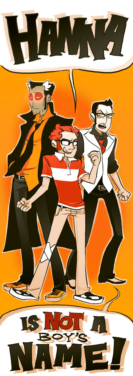 >>53011Seriously what is this? I am intrigued. That is one damn sexy Ples in the last panel.I decided to do a little searching on some of Tessa's character names to see what else came up---I was particularly interested in Casimiro and its etymology (as someone who speaks a little Spanish, I noticed it can roughly translate to "I almost see"). Turns out it's a Spanish/Portuguese/Italian form of Casimir, which can mean "Great Destroyer" or even "Destroyer of Peace." Ms. Stone, always doin' her research.And then there's this: http://www.youtube.com/watch?v=wbfQ71hMr_kSage for "what the fuck, Mags?" <3