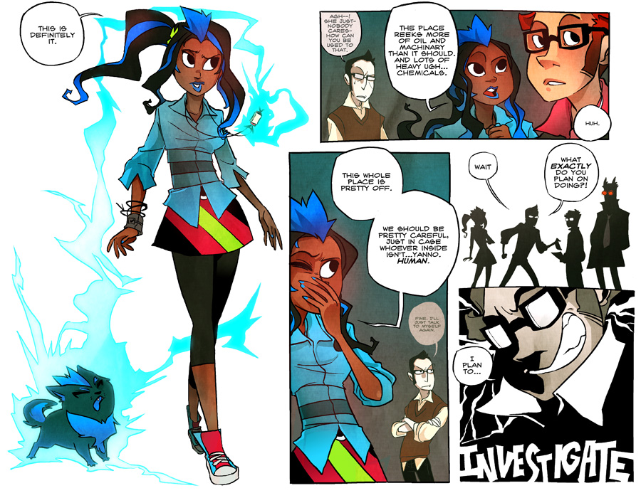 Break the SilenceWords by Spook, art by Caco. best duo ever.-They hadn't actually gone out expecting a troll. All the building manager had said- a bit vaguely, he's realizing now- was that there had been some mysterious thumping noises and strange smells coming from the basement. It had seemed harmless enough, at the time, to ask Conrad along."You can see in the dark, right?" Hanna had said, eager as ever and practically dragging Conrad out of his apartment and into the night. "When you go all bat and stuff! I mean, yeah, Abraham has those flashlight eyes and all but he can't really see with them like you can. So this way if it's something that's gonna hide if we put on a light, you'll be able to spot it and then we'll know what it is and then I'll know what to do with it! Y'know, hopefully."Conrad hadn't exactly seemed reassured by this (possibly partly because Hanna seemed to be ignoring his protests of "I don't exactly have a handle on the whole... bat thing yet," or "I actually had some work I was doing?" or "You could've at least called me first") but, in the end, he had followed them willingly enough. Sort of.The building looked old, but nice; the entrance and hallway were clean and well-lit and seemed almost cheerful. The stairs leading into the basement, on the other hand...Hanna had been the one to venture forth first, of course. "I bet it's not even that bad," he'd said, and stepped down into the darkness.It had taken a minute, the three of them huddled close together on the dark, dank stairs, for Conrad to manage popping himself into bat form, and then it took another minute for him to give up on flap-flailing around and collapse onto Hanna's shoulder instead. He'd muttered an "I hate this," but sat up a little to peer around anyway. "Um, there might be something in the corner there, maybe."He'd sounded doubtful, but they'd moved closer to where he pointed anyway, and he'd got airborne after another try. "Yeah, there's definitely something-" he'd started to say, and that was when the troll stood up.One of Hanna's books had a description of trolls; it didn't really do the size of them justice. The thing is huge- eight feet tall and nearly as broad, with oversized limbs that'd look funny if they weren't, well, sort of horrifying. He looks at it now and thinks that it's very possible that they're in over their heads. As usual.As the troll stands, Conrad screeches in alarm, trying to flail away- but somehow the troll is fast, and one enormous arm swings towards him, sending him flying towards the wall with another screech that turns to a human yell as he smacks into the brick."Fuck, fuck," Conrad's saying, ducking as the troll's hand smashes into the wall beside him, trying to dodge away- failing, crying out as one massive fist slams into his arm.It happens so fast, he hasn't even had a chance to react or even think what he should be doing. Fortunately, for once, Hanna's impulsiveness pays off; he runs at the troll, already scribbling a rune onto his palm as he goes.The flame flaring up from Hanna's hand makes the troll reel back, roaring, all of its attention diverted to keeping as far from the fire as possible. "Daniel!" Hanna calls, but he doesn't need telling; he's already crouching at Conrad's side, helping him to his feet, grabbing the back of Hanna's shirt to yank him towards the door. "Wait, we can't just-""We can come back later," he says firmly, not relaxing his grip even a little bit. They hadn't come in expecting a fucking troll, and there is no way in hell he's letting Hanna stick around to try to deal with the thing now. Judging by the way Hanna scrambles up the stairs, he probably isn't really inclined to argue anyway.As soon as they're out of the basement- back in the jarringly bright, quiet foyer- Hanna slams the door behind them, and sets to work drawing protective runes all around the frame. Beside him, Conrad is whimpering, right arm clutched to his chest, eyes glazed behind his glasses. His legs probably won't support him much longer. "Can you change again?" he asks, and Conrad looks up at him blankly. "So that we can carry you," he says; Conrad doesn't seem to hear him for a long moment, but eventually he nods.It takes less work, this time, for Conrad to switch forms. Maybe he's getting the hang of it. It seems to exhaust him, though, or maybe that's just from the pain- one wing is crumpled in a way that looks... bad. He holds Conrad carefully against his chest, and waits for Hanna to finish the binding spells he's weaving.Hanna's uncharacteristically quiet on the way to Worth's, continually shooting glances at the huddled ball of Conrad in his hands. Probably feeling guilty, he thinks.He should probably feel guilty himself, for feeling glad that- for once- it isn't Hanna that he's carrying, broken and whimpering, to Worth's office. He should. But he doesn't.Worth's in, of course. He always seems to be. And- again, of course- he's immediately unsympathetic at the sight of Conrad in his hands. "I ain't a goddamn vet," he says, and then Conrad tries to sit up, whimpers and falls back again, and Worth stops. "Back room," he says after a moment, and turns away."You're harder t' fix like this," Worth tells Conrad once he's been set on the exam table. "Make yerself useful n change back. Hanna, go find some paper, I'm gonna need some things. Dead Bloke..." Worth pauses, looks him over. "Stand there n look broody." He turns back to Conrad, who shifts forms abruptly, nearly falling off the table in the process. "Now ain't it nice when people do what I tell 'em to. C'mon, Hanna, yer holdin' us up."From the way Conrad's moaning to himself, the changing back and forth isn't doing his arm any good. Worth ignores him, though, and waves away the papers when Hanna comes back with them. "Those're for you. I'm gonna need..." He pokes experimentally at Conrad's arm, making him cringe and whimper. "Two numbing an' a guiding. An' while you're doin' it you can go ahead n tell me w