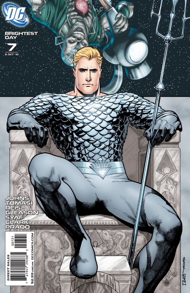 Brightest Day #7 variant cover has Aquaman in a similar position. Are they going to do this with all of them? And I think the outfits are grey because they're still partially Black Lanterns/dead, and won't fully be restored to life until they complete their missions....And now I'm going to be thinking about kinky D/s sex the rest of the day. DANG IT MAX AND BOOSTER, STOP BEING HOT. NO, WAIT, DON'T STOP. EVER.