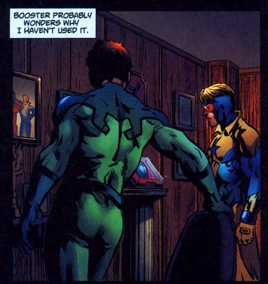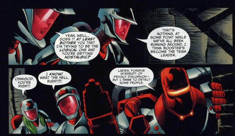 >>53481I love this moment and JLGL. BTW, anyone else get a porny vibe when Scott says that they can all get to know each other better when this is over?>>53425I'd love for this to be an ongoing gag with the members realizing Booster is the leader. Cap would be startled, Jaime would shrug it off because it's obvious and finally Booster would be bewildered that he's in charge.