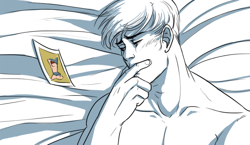 >>53958As promised: Porn! (also: this is this filthiest thing I have written yet. I feel like I need a cigarette.) Posted correctly this time, dammit. Booster doesn't get in until late. The embassy is quiet. Half the team is out of town tonight, and it looks like the other half is either asleep or generally down for the evening. Booster doesn't bother flicking the light on in his room, just wanders into the bathroom and turns on the shower. The water is hot and good against his skin, and he braces his palms against the tile and doesn't think about anything at all for a while. There's an envelope on his bed. When Booster reaches for it, his fingers stick to the paper, leaving little damp spots. He frowns and wipes his hands on the towel wrapped around his hips, then flaps the envelope in the air to dry it out before he pries it open. A photograph flutters out, followed by a note. The photo lands gently on his bedspread, face down, but he manages to catch the paper in midair. It's Bea's handwriting, and he picks up something about “chickened out” and “what a waste” before his brain picks out the vital word- “Ted”- and his hand automatically grabs the photograph. The picture's sharp, every detail clear, and small enough that Booster can tuck it against his open palm and stare. Ted is a little shy. It might be a holdover from his chubby days; it might be that Booster is shameless enough for the both of them, as Ted is fond of insisting. Whatever. Ted wears slightly oversized clothing. He picks ridiculous prints for his ties and socks; he slouches when he's nervous. When he's not in his costume, Ted instinctively tries to fade into the background, become silly and ambling and nonthreatening. But when he puts the goggles on, he transforms. (They all do; Booster feels his shoulders straighten when he's in uniform, sees Guy's perpetual sneer solidify into an expression of total determination and Tora's eyes freeze into focus.) Ted becomes a hero in his costume, doing backflips off enemies, science-gun in his hand. He does moves that Booster can only dream about, turns and springs and roundabouts, flying through space powered only by his own sure footing.Maybe it's the suit. Maybe it doesn't matter. Ted is sitting on his knees in the picture, legs splayed under him. One arm is reaching upwards, index finger crooked; the other is wrapped in the remains of his t-shirt. It could have been a casual stretch except for the look on Ted's face. His eyes are hooded, blue shining in the dim light, and there's a knowing half-smile on his lips. Booster feels a sudden flare of jealousy- Ted was looking at Bea, posing for Bea when he did this, Bea with her sweet curves and hot lips. Bea, he remembers, who is his friend- their friend, who made sure he got this picture, who he and Ted fight and laugh and drink with. The jealousy recedes, replaced by gratitude. He needs to do something nice for her, something very nice, because this picture in his hand is all the things he's wondered about, dreamed about. And yeah, his dick is definitely stirring beneath the wrapped terrycloth; Booster has to resist the urge to cup himself. Instead he falls backward on his bed with a thump and brings the photo closer.Ted's skin is paler than Booster's; where the light catches it, it glows faintly, bright lines against the deeper shadows along his neck, hidden between his thighs. There's a bright spot at the back of Ted's hip, just where back turns into buttock, where the skin is particularly fair against the black border of his suit. Booster can imagine the warmth there, the softness; can imagine the way muscle and heat would move under his lips, if he put his mouth on that spot and moved down. Ted is compact, muscle and the occasional soft curve of flesh. He has hair everywhere reddish-brown, a few shades darker than his hair. The curls seem to emphasize his form. They soften the hard lines of his shins and forearms, blur the curves of his pectorals. The hair trails down his abdomen, developing into a delta of dark warmth at the waist of his uniform. There's a corresponding divot of hair along an inner thigh, shadowed by a bulge in his pants, and yes, Booster has to give in and press his hand against his aching cock at that point. This is too good, just looking, just seeing Ted, wanting and inviting and staring at him from beneath those long eyelashes. He can see the lines of Ted's hips, the muscles along his belly straining as they dip into his groin. Booster palms himself again through the terrycloth and groans. His jaw is a firm line, clean-shaven. Booster wonders if he would find stubble there, kissing it, licking over the taut skin while Ted moaned and pressed against him. Ted's hair is tousled, begging to be touched: Booster could bury his hands in it, tilt Ted's face back and attack his lower lip, suck it swollen and listen to Ted moan. He could lick a stripe down Ted's neck, dive into the notch at his collarbone, rub his face, ghost his breath over the fuzz on Ted's chest. He might chuckle a little at that; Booster used to be able to make Ted giggle and swat at him by tickling him, very lightly, right where his hairline meets his neck. “Ted,” he says softly, and pulls his towel out of the way. It sounds good, and Booster says it again as he smooths his palm against his cock.. “Ted. God...” Just a little heat, now, a little friction, like he's brushing against Ted's thigh while he mouths his way down over his chest. He would plant a palm on Ted's abs, feel the muscles shift while Ted shivers and squirms beneath him. He can see the breadth of Ted's chest in the photo, wide and firm, the way the shape of his body flows, from long arms into his shoulders and down his torso. Booster leaves his cock for a moment to scrape his nails down his own side, shuddering as his ribs jump. His nipples, yeah, rolling one between finger and thumb and pinching, and Booster can imagine Ted arching into him, even as he whi