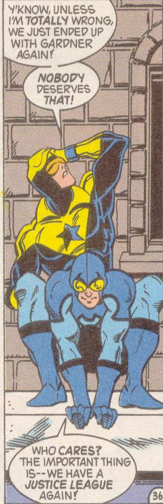 >>53481I love this moment and JLGL. BTW, anyone else get a porny vibe when Scott says that they can all get to know each other better when this is over?>>53425I'd love for this to be an ongoing gag with the members realizing Booster is the leader. Cap would be startled, Jaime would shrug it off because it's obvious and finally Booster would be bewildered that he's in charge.