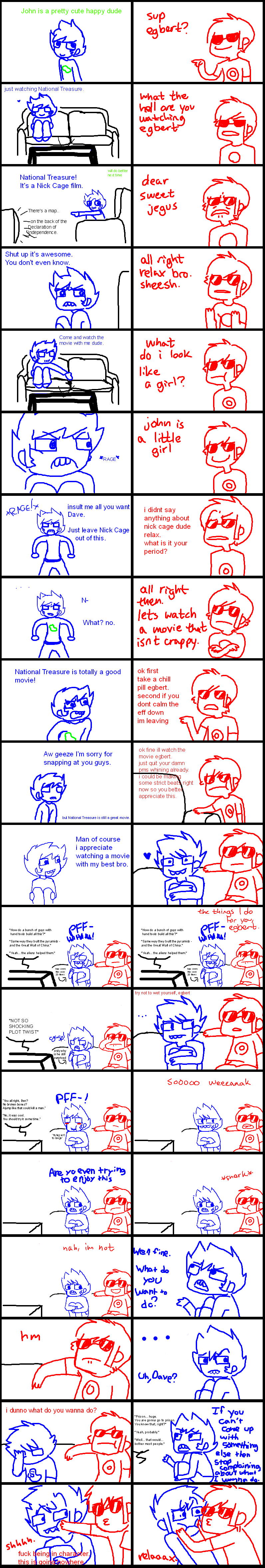 All right, a friend and I did another roleplaying thing, but it ended up with me basically just doing another sex comic. The actual sex is really, really short, but I guess if you feel like reading some dumb Dave/John interaction, it's all good. Anyway, first part.