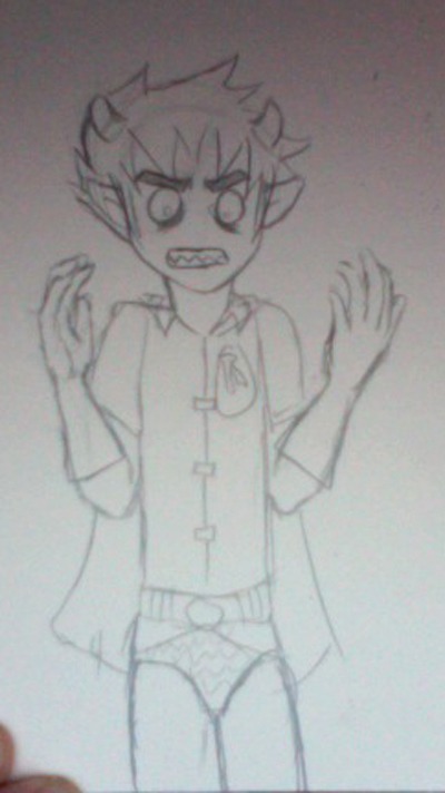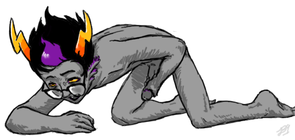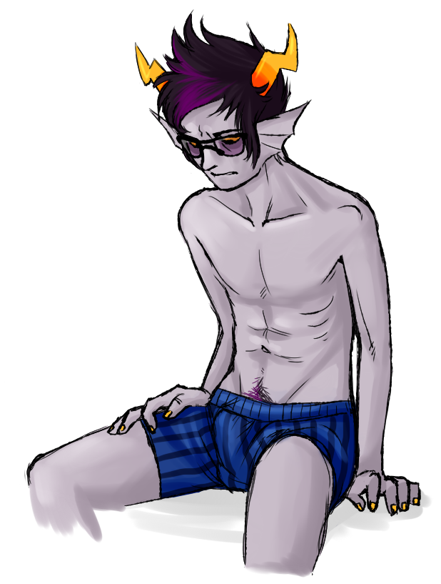 Hi I drew Eridan without his shirt on and staring woefull at his boner because I wanted to.
