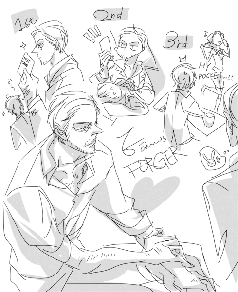 >>53959Drawfag reporting. His face doesn't have any distinct features except his constant forehead creasing and it's actually pretty tricky to capture his eyes and mouth -- the latter of which is hardest to do in an anime style.Besides, many artists like to stylize the characters and stick with what's most distinct about them. In Arthur's case, his slicked back hair and sharp appearance.