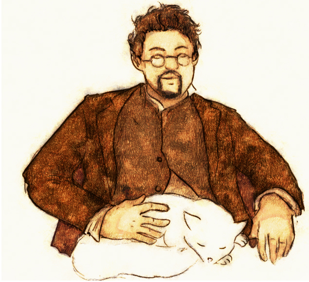 >>54010I admit, there is something weirdly hard about trying to simply his face into a cartoony style, and actually drawing it right.Added Eames to my doodle to make it relevant to the thread, and managed to mess up his face too. Whoops.
