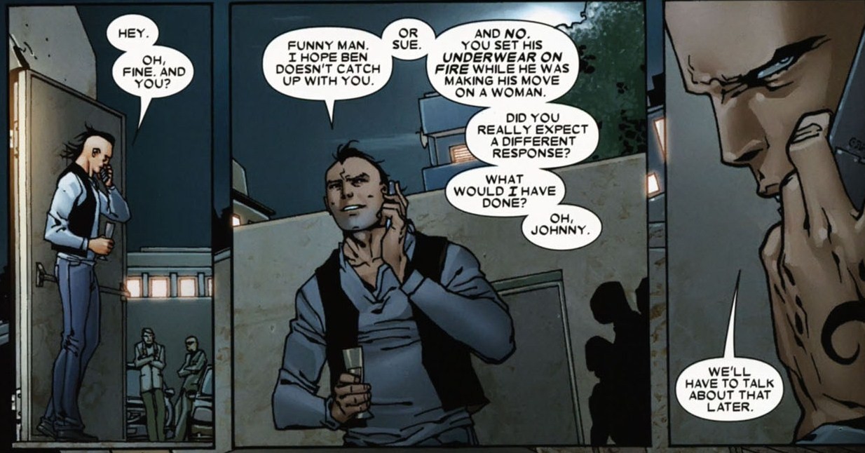 >>57024Even better (In my opinion): He gets Johnny so worked up that he loses control and when he freaks out an apologizes, Daken tells him to keep up.