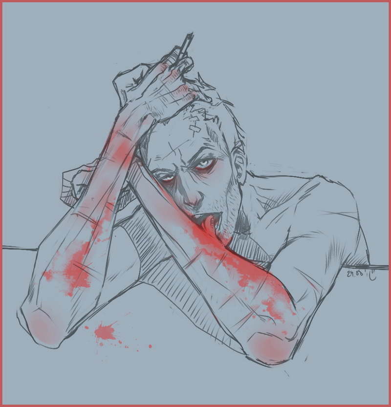 >>55227 Zombie's in pretty good shape, so it would probably at least not be rotting and covered in maggots. And the cuts would probably be sewn up. Could he still feel it if his dick got hurt?