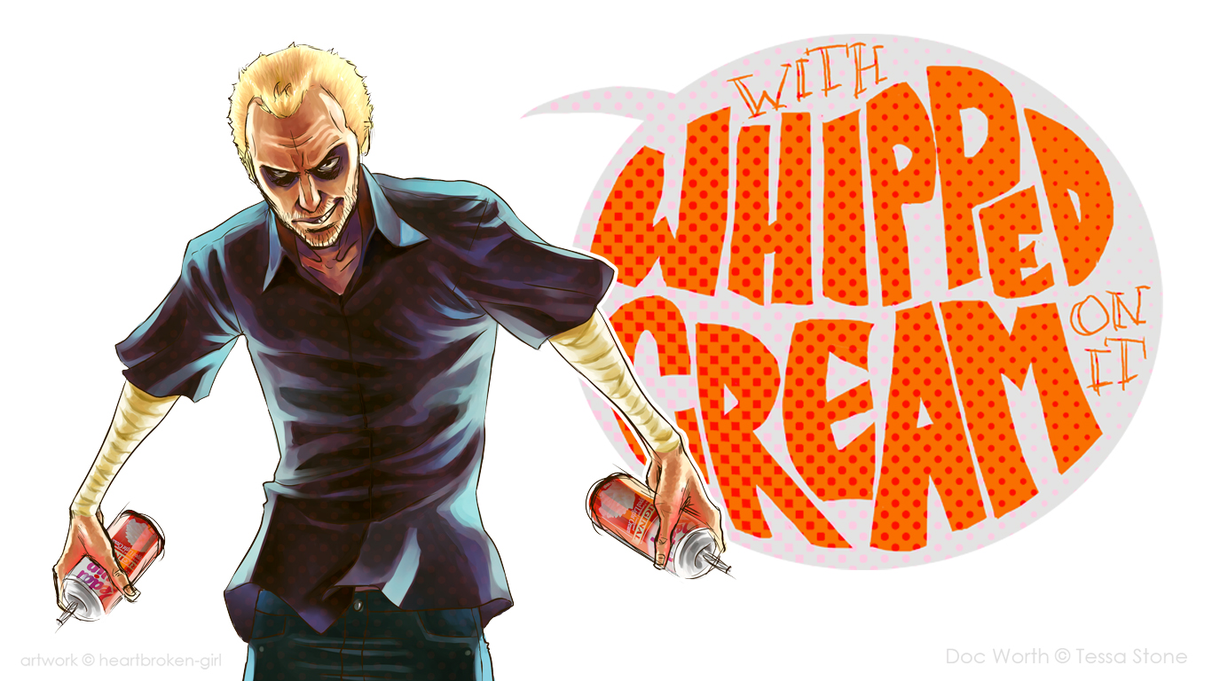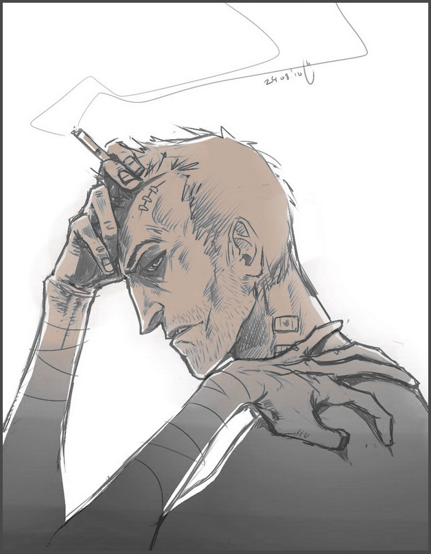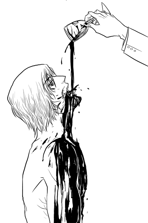 Guhhh, time to stop agonizing over this and fucking post it already. Long, and not (yet) containing porn but bringing us right up to where it will obviously happen. AND IT WILL HAPPEN even if I am slow as holy fuckContains: drinkin', fightin', and a gay unicorn joke. Continued from >>52656* * * *Part II: WorthThe fluorescent light flickered and buzzed overhead, somehow managing to make the tiny bathroom feel even more claustrophobic---as if the walls moved in during those split-seconds of darkness and jumped back as soon as the light returned. Worth held his hands under the rusty faucet, caught the icy water in his palms and brought it up to his face. He glanced up to the mirror and was transfixed for a moment by the way the droplets ran down his gaunt cheeks. He cocked his head to the side to alter their courses, following their individual paths for a moment before losing interest and straightening up.Fuck this, he thought bitterly. It was time for a drink---no sense in letting the night go to waste moping about like prissy little One-Fanged Wonder. It had been half an hour since Conrad had slammed the door to Worth's office behind him, leaving the doctor still leaning against his desk with a little blood drying on his wrist and a raging hard-on completely neglected in his pants. Ah well. It was a thin line he walked with the vampire----push just enough and Conrad would give him everything he wanted. Push too hard, even a hair over the edge, and he'd be gone.Worth was pretty sure he'd been getting better at it lately, but apparently tonight he'd tripped up. Figured that it would have been something about Conrad's mother that would set him off. He could barely even remember what he'd said, only that Conrad had pulled back in shock and stared at him for a few seconds before delivering a (delightfully hard) punch to Worth's gut, shouting something at him and turning tail. Frustrated, Worth had sat on his desk for a few minutes staring at the back of his office door, then heaved a sigh and lit up a cigarette. He'd wrapped the bloody bite mark up in a fresh bandage and then sat down to try to get a little work done, but Connie running off in the middle of what was quite probably (according to his dick, anyway) gearing up to be great sex had put him in a foul mood, and he was having more than the usual amount of trouble concentrating. He flicked the light off in the bathroom and stepped out into the hallway adjoining his front office, then took a left into the back room where he kept most of his things and the dirty old mattress he slept on. The “medicine” cabinet was running a little low---he'd have to talk to Monty about that. There was nothing---from hospital supplies to arcane herbs to hard liquor---that that man did not traffic in. Everything had its price, of course, but Lamont wasn't a hard man to bargain with. Turning the key in the lock (some things were worth protecting), he surveyed his collection, eyes finally landing on a bottle of Jack Daniels that looked three quarters empty already. It'd do---just something to warm his belly and take the edge off the mixture of annoyance and arousal he still felt. Goddamn undead yuppie. Six or seven shots later, Worth leaned his head back against the wall behind his desk, chair tipped back precariously on two legs and feet propped up on a pile of papers. Ash drifted down to the floor from the cigarette dangling between bony, nicotine-stained fingers. He let his eyes fall shut, relishing the warm glow, and wondered idly what Conrad was doing.Oh, mother'a Christ, his thoughts derailed in annoyance. What the fuck was he still thinking about him for? Ridiculous. Bloody fuckin' ridiculous, what that is. He let the chair fall forwards with a thud and reached for the bottle, only to find it empty save for a few dregs. He squinted angrily at it for a moment and then tipped its meager contents down his throat. With one last derisive glare at the empty vessel, Worth pitched the thing across the room, and the sound of it shattering against a filing cabinet brought only the ghost of a smile to his lips. Before he had time to wonder whether or not he should try another bottle, there was a faint knock at the door. Worth quirked an eyebrow---apparently he wasn't the only one still musing over the night's earlier episode. Maybe Conrad could be persuaded to pick up where they'd left off, or maybe the vampire had just come back to shout at him some more. Even the latter was preferable to boredom.Worth stood up (feeling the ground shift and sway only a little beneath him---after all these years, damn him if he couldn't hold his whiskey) and made his way around to the front of his desk. “Door's open,” he called out gruffly, flicking open his lighter and pulling another cigarette out of the pack in the front pocket of his coat. The office door swung wide. The vampire who came through it---and there was no doubt in Worth's mind that he was a vampire---was a stranger. Tall and dark-skinned, dressed in a stylish brown blazer and black slacks, his lanky form seemed almost to vibrate with restless energy. He cocked his head to the side and smiled, all teeth and confidence, and Worth felt something in the pit of his stomach turn over. Whiny, repressed art-fag vampires he could handle. This, on the other hand, was something he did not want in his office, or anywhere near his person. He took a long drag of the cigarette and straightened up a little, eyes narrowing in suspicion. “Help you with somethin'?”“Hope so, Doc,” the vampire grinned, red and white eyes (the fuck's wrong with the left one?) sizing up the other man. A pause, and then, “Right, manners, of course. Name's Casimiro.” He extended a hand, which Worth reluctantly took---the casual strength with which the vampire gripped and shook his hand made his stomach flip back over again. “Enchanted,” the doctor muttered absent-mindedly. He could swear he'd heard the name somewhere, but he'd prob