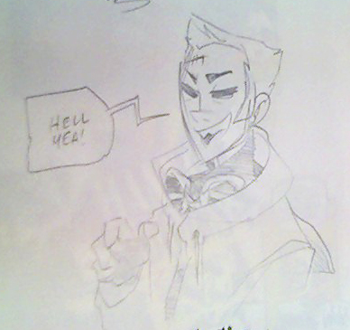 >>56545heh.. yeah after I drew it I was like holy cow he's so huge.. but ooowww.. man it must be pretty painful for Veser lol. Ah yeah I think someone asked what his name was during a stream or something.. I forget.. but I believe that Tessa did in fact say that's what his name is.
