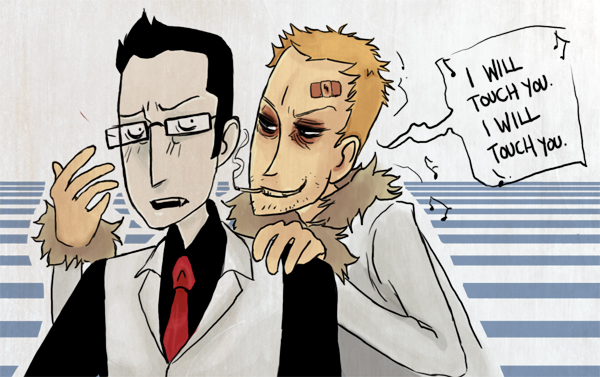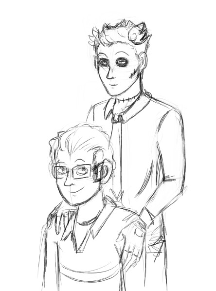 And to round this all off and end my pic-spamming journey for the night, we have some creepy Worth singing "Dr. Dick" to Conrad.I hate that song and it gets stuck in my head and then I do crap like thiiiiis. Just a doodle that I half-assedly inked and colored hurhur.