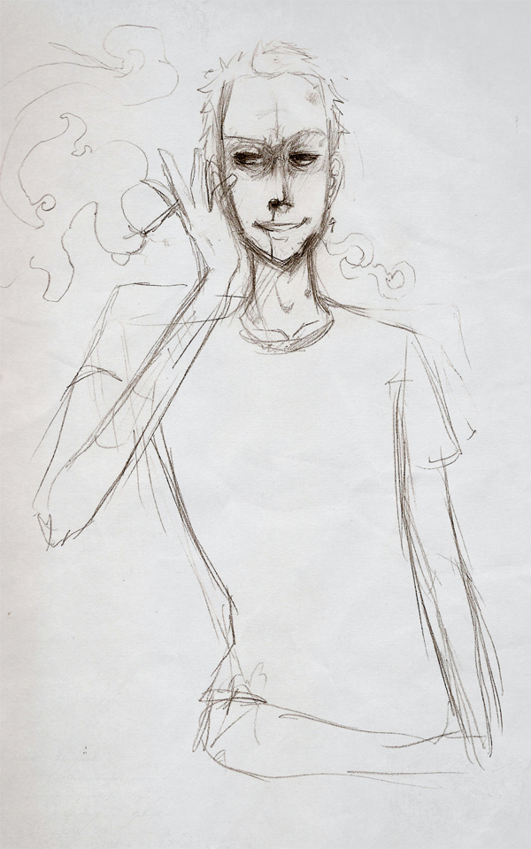 Alright folks, I'm about to dump some stuff I've done on you folks. Starting with a sketch of Worth all beat up 'n stuff. Hng I'm tired.