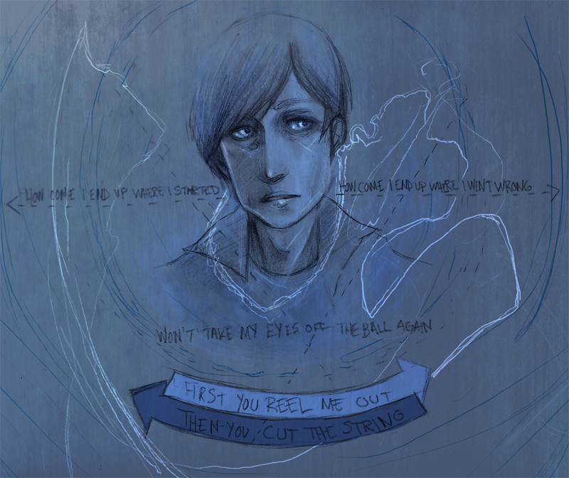 Err. A doodle that I slapped some color on of Lee. Lyrics are from "15 Steps" by Radiohead.
