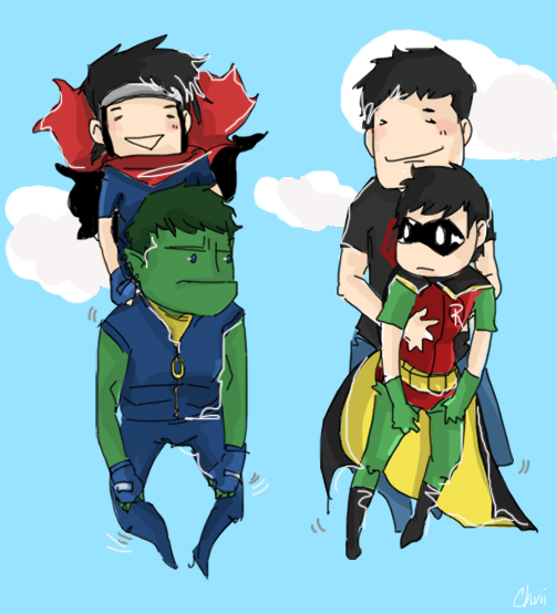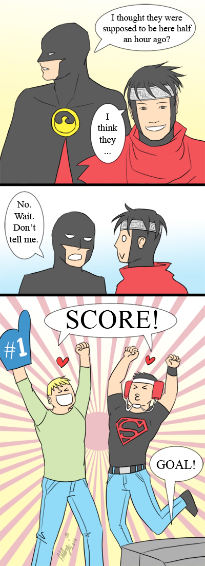 It's Victor attacking Jonathan Crane, which is a pairing I'd be amused to see.I could have sworn I had more crossover stuff than this. I'll get back to you if I can find what I did with my stash of Bucky/Nightwing.