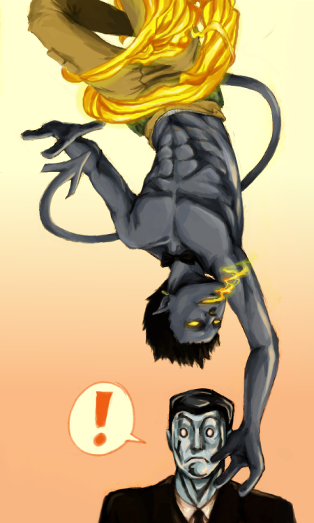 >>2091I've seen this, and I've always wondered why he looks so pissed at the prospect of naked Nightcrawler.