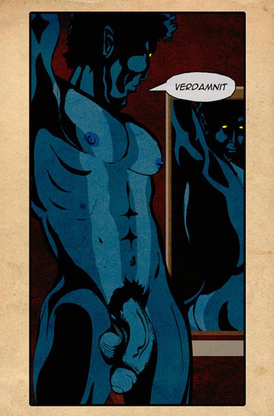 I took the liberty of 'cleaning' the third pic of the thread. The official art by Byrne that he censored himself. If you look closely, you can see that some of the ink around his junk was added later. It's a different shade. So I cleaned all of that out and left the outline that was still hidden underneath. Enjoy.