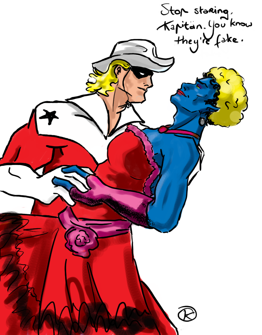 Well, someone up for Nightcrawler as a saloon hostess/Captain Britain?