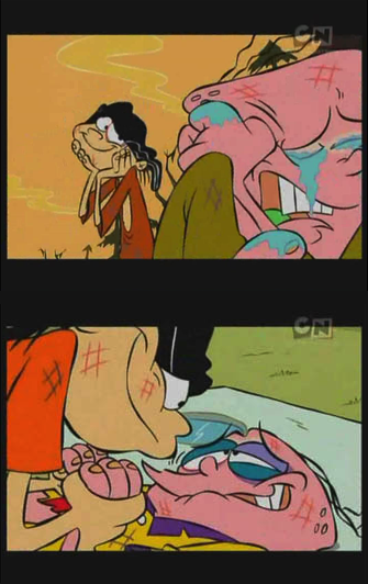 The wonderful thing is that this is actually pretty much canon. A certain slash fan joined the ranks of the storyboard artists around season 4 or 5, and started to put in a lot of subtext for these two. To which, evidently, the directors did not object, so....Also amusing tween frames, which is all I got.