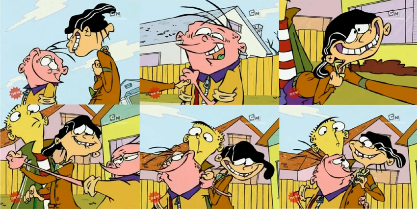 1 - Edd: Ah--!2 - Edd: Stop this, Eddy. Please don't make me do these kinds of things... It's so filthy...3 - Eddy: Hey, quit your worryin'! Ain't nothing filthy about it.4 - Edd: But Eddy! The mouth is actually a breeding ground for scores of pathogenic micro-organisms--Eddy: Oh, so my mouth's filthy, is that it?!