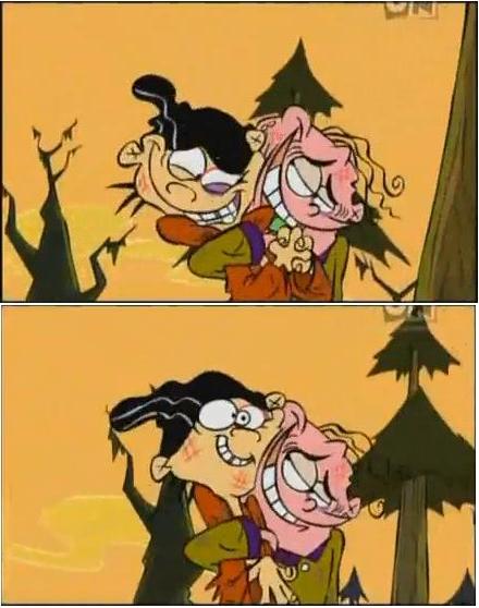i.....i .... I just...I just-.. this thread I just...I JUST LOVE THIS SO MUCH WHAT HAPPENED TO MY CHILDHOOD OH GOD NOOO!On another note, this is not the first time I have heard of Edd and Eddy as a pairing. The first time was actually from my mother many many years ago(wow! ten!). We were watching the show and my mother kinda says to herself "huh, I wonder if double-D and Eddy are interested in each other, they sometimes seem kinda romantic," and I being but the tender age of eleven, and a full year away from my intrests in others of the same gender, say, "nah mom, double-D is a guy! they wouldn't be that way!" At this my mother kinda stumbles her words and says "oh! n-no I thought double-D was a girl you are right!"now that I think back on it... she never thought Edd was a girl, considering we were talking about the episode beforehand, and she referred to him as a "he" on several occasions.Not to mention I was talking to my mom about the first slash pairings of Spock and Kirk recently and she was all like "OH YEAH! I remember reading some of the things my friends would write back in the sixties!"oh man... my mother and I are more alike than I ever thought before. WHAT HAS THIS THREAD DONE!