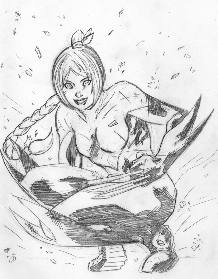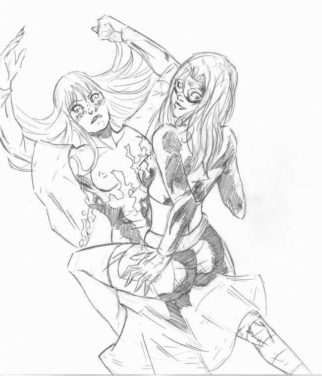 I like the way you draw women, good Sir. If you're not sick of drawing them yet, I'd love to see your interpretation of Squire from Batman. Possibly hanging out with Robin.