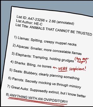 >>19666Or anything from her list of animals not to be trusted.