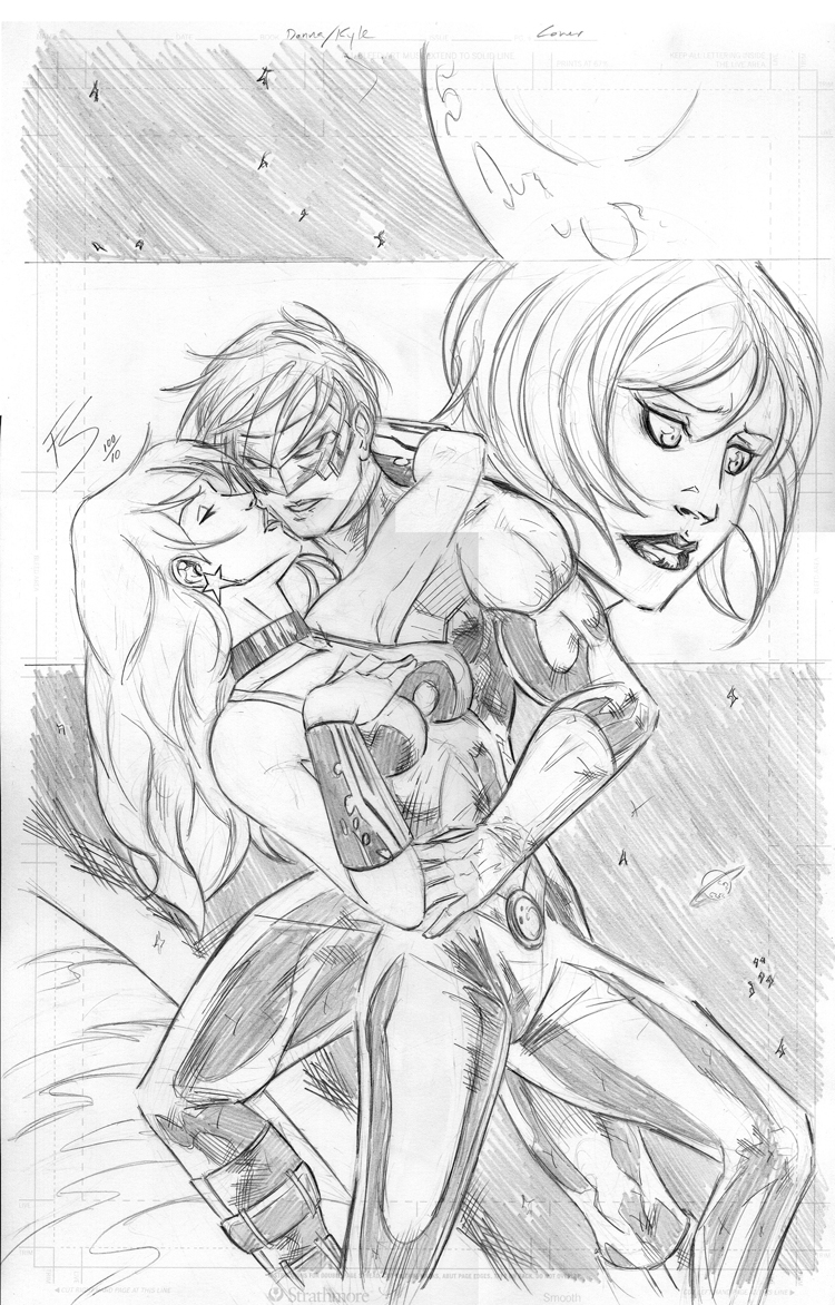 >>31421I was actually commissioned to do Donna Troy/Kyle Rayner.I decided to add Jade in the background, but she doesn't have any real distinguishing facial features besides being green.