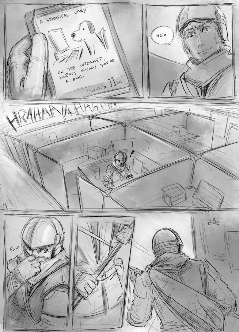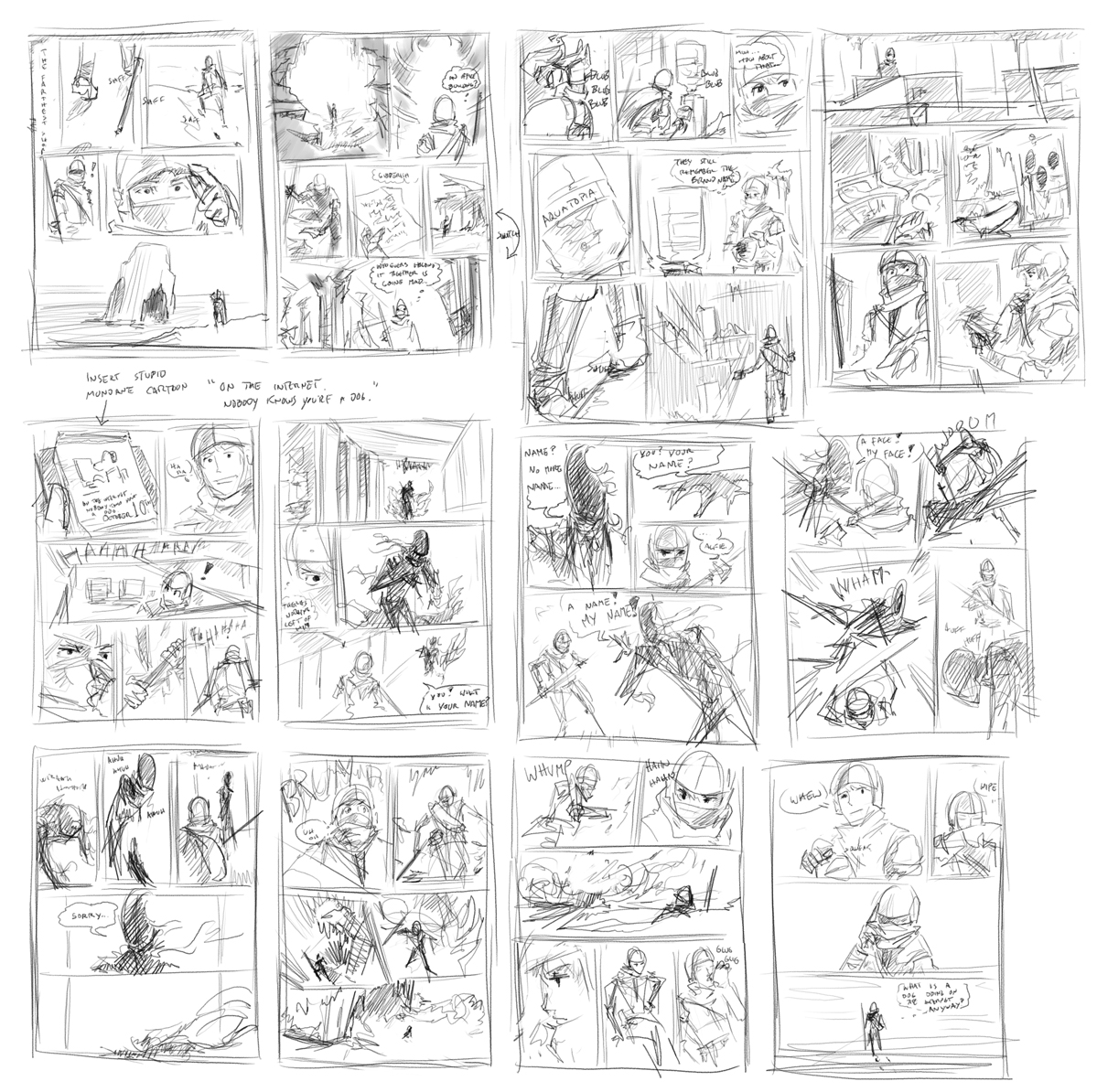 Aaand the layouts.You can theoretically read this 12 page story right here, but I can't vouch for it's legibility just yet.