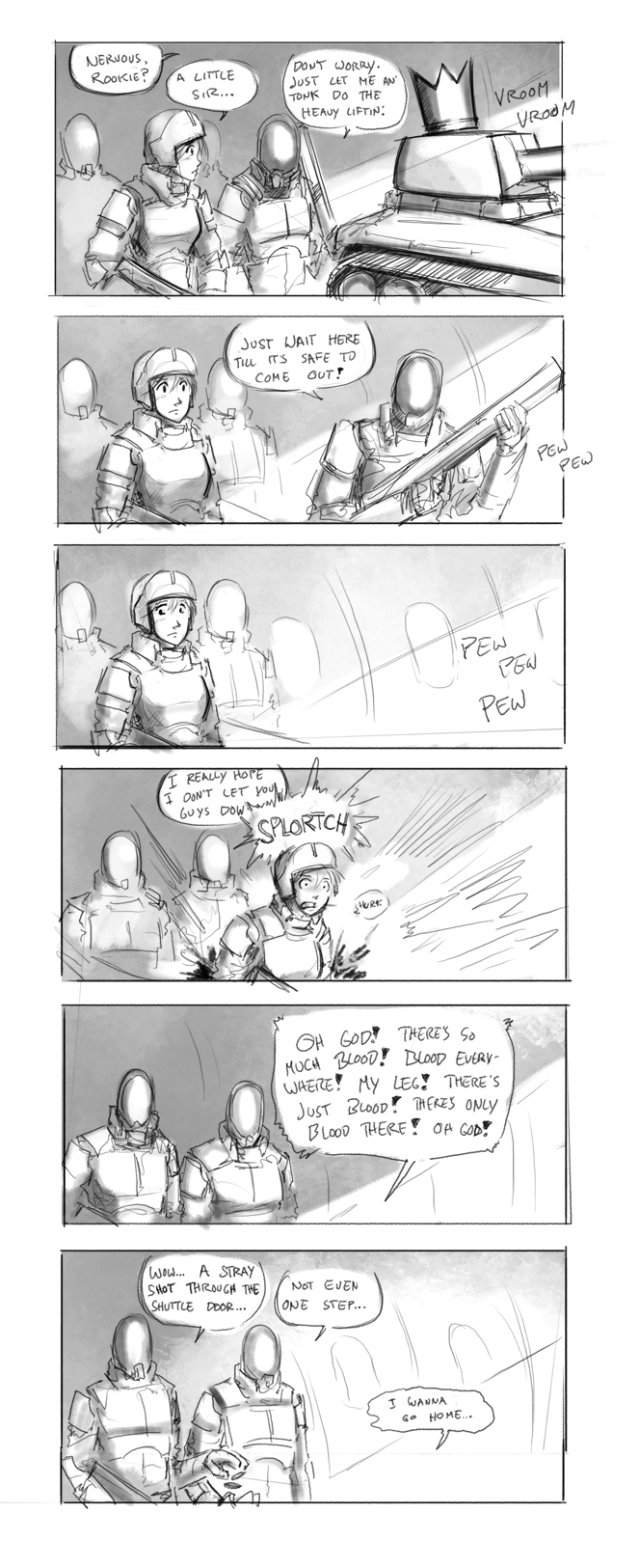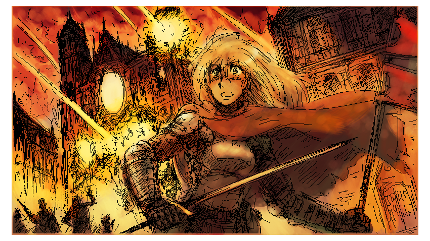 Been a busy week, couldn't do much for the comic and only got around to a couple sketches. For the 24 hour comic thing, I'm going to clean out my livestream's memory a bit by condensing some of the longer and better sessions into speed draws. I really would like to get to a full 24 hours eventually with that comic. Someday.Anycase, I finally came back to fix this drawing up a bit with some of the help the folks at /ic/ gave. It could probably still stand much more work, but I better call it done soon or I'll never be satisfied.>>26145I'll admit, I felt the repetition and the alliteration was worth the redundancy. (mySelf, Sword, Steel) I played around with other words for armor to no avail. Yet only now I realize, "Shield" would have been just fine. I'll have to remember "Therein" for next time. Thanks!And I get ya about editing, I've spent days on simple passages only to come back weeks later still parring it down. Even when getting grandiose and big, a simpler concise statement may be more pronounced than any number of fancy adjectives.>>26167Sigh, I kinda would've rather you didn't. Not that I didn't like drawing it, or am not too unhappy with the drawing itself. But if I want it here I'll put it here. The general drawfaggotry request thread should suffice. (and last longer)>>26180I feel like I should know what RDJ stands for, but I don't. Unless that's Robert Downey Jr.Anycase, I was drawing a Dash. But it was coming out crappy.>>26219I... actually kinda regret the first drawing. Mostly because I know it sucks yet its reposted a billion times over and over again for the sake of a crappy joke. Oh well, I'll have to live with that.