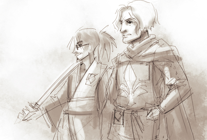 >>33698Well, I... I... Oh my. I didn't expect...Well, I guess that in some level I knew this was a pet project of yours, the kind of thing you come up with one day and never truly goes away, so I tried to build everything around the pictures. Not just the characters but also the setting, and how they are interconnected. "There's a city, it's a very beautiful city, she probably lives in the city, it's under siege, but back then it wasn't, I know it was back then because she was younger, she was with someone, who was that", and so on. That I managed to write something that ended up feeling so familiar and so fresh at the same time, in my opinion, says more about your art than about my writing.After coming up with the main themes, the rest was as easy as it was enjoyable. The narrative was particularly fun. I tried to come up with some twists here and there, like how the main character only speaks in flashbacks and at the very end, as if all she had learnt and heard was leading to that point. Dialogue is something I'd like to believe I'm pretty good at (unlike descriptions). Finding a character's voice and sticking to it is both challenging and interesting, and again, if I found the right voice for the cast, it's all thanks to your art.Sooo... I'm really glad you enjoyed it so much, thanks again for the chance to flex the old writing muscles, and feel free to use any and all elements you like in your story. Because, at the end of the day, that's what it is: Yours.Though if you ever happen to need an assistant writer for some reason, well...