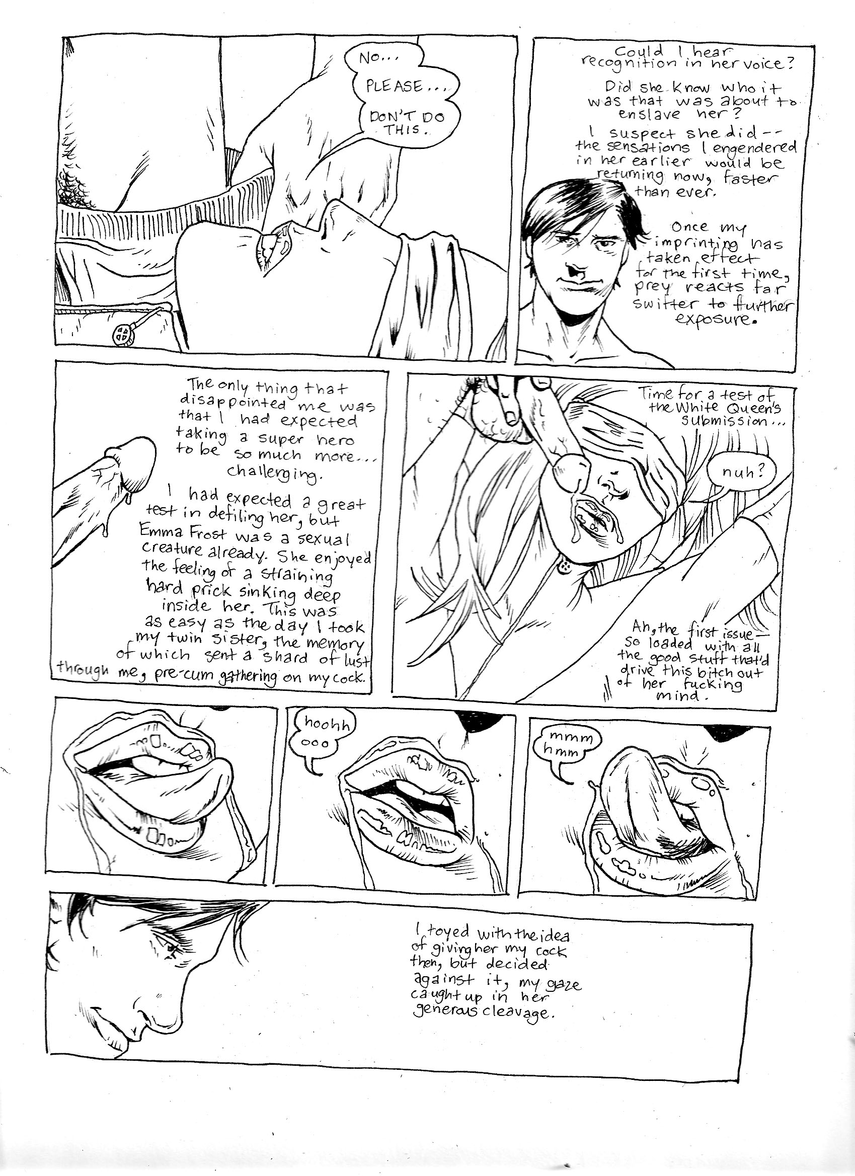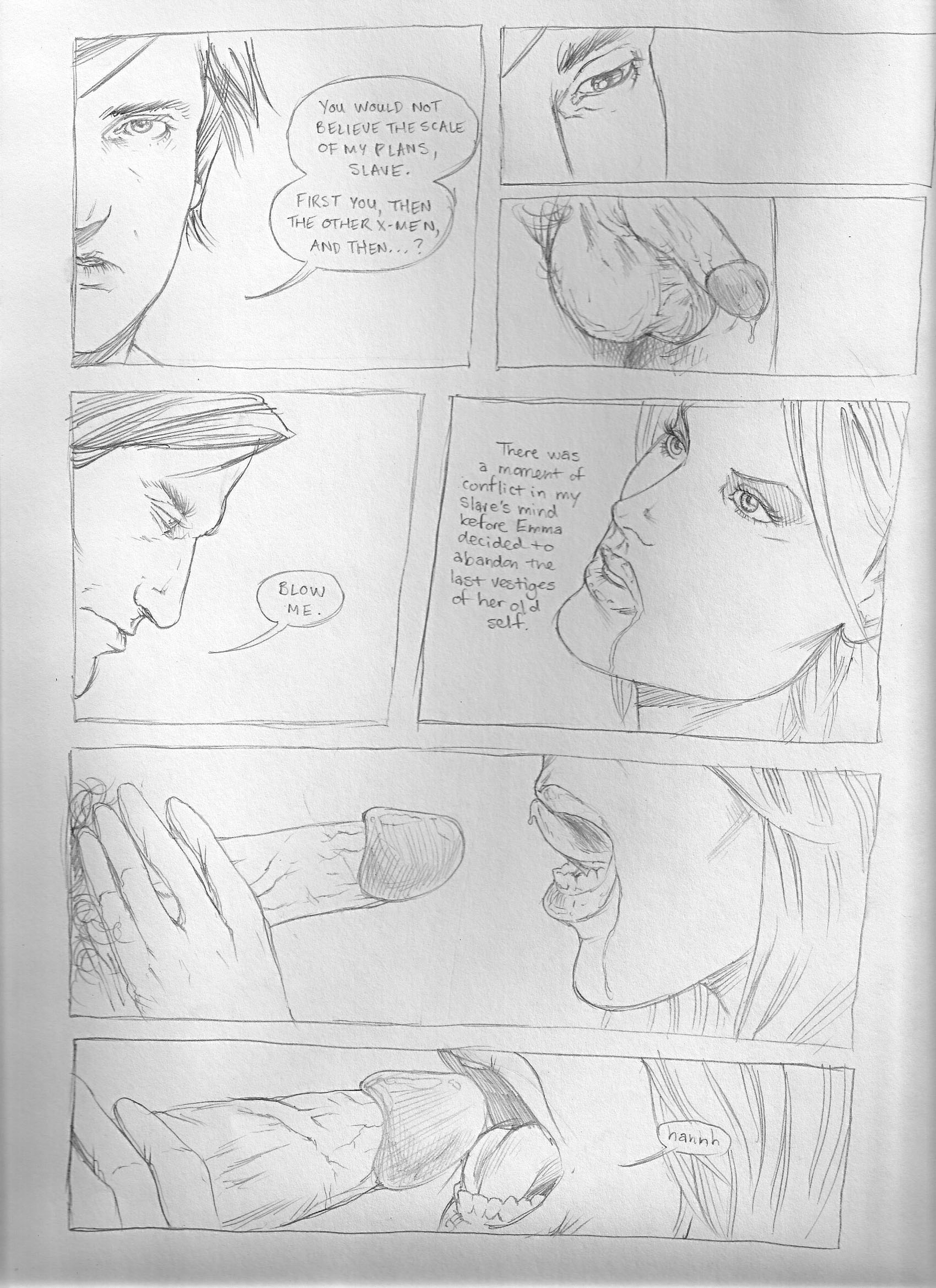 Just scanned some inked pages from the Submission Agenda comic and I thought I'd upload them here. This is the Emma Frost chapter, FYI.