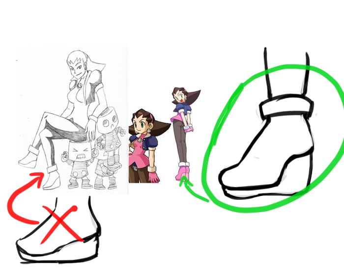 >>32219I think the biggest problem is how flat the foot is and how chunky the heels are. Not the fact that they're big, but the way your drew them in particular.