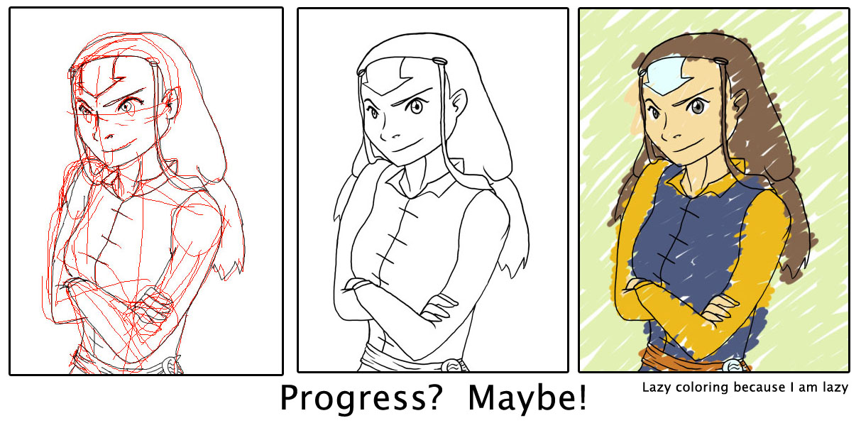 Hm. This pose wasn't very good. Still it was more interesting than an arms-crossed pose, and I think the inking came out better than before. Please let me know if you see anything in the process I could change up or fix.