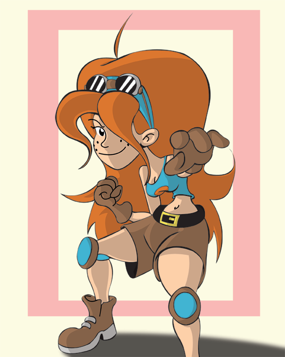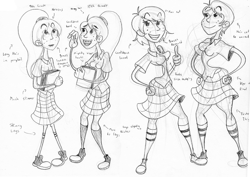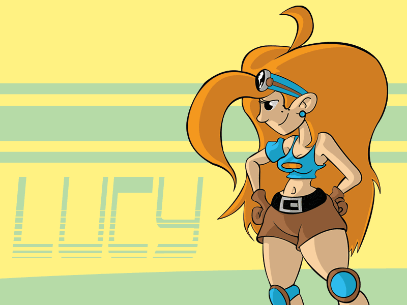 I'm trying to redesign ol' Lucy McFatbutt. I was worried the current design for her was a little too bland so I took a page from the Nomura school of character design and added BELTS AND ZIPPAHS!Still undecided on whether I like it or not...