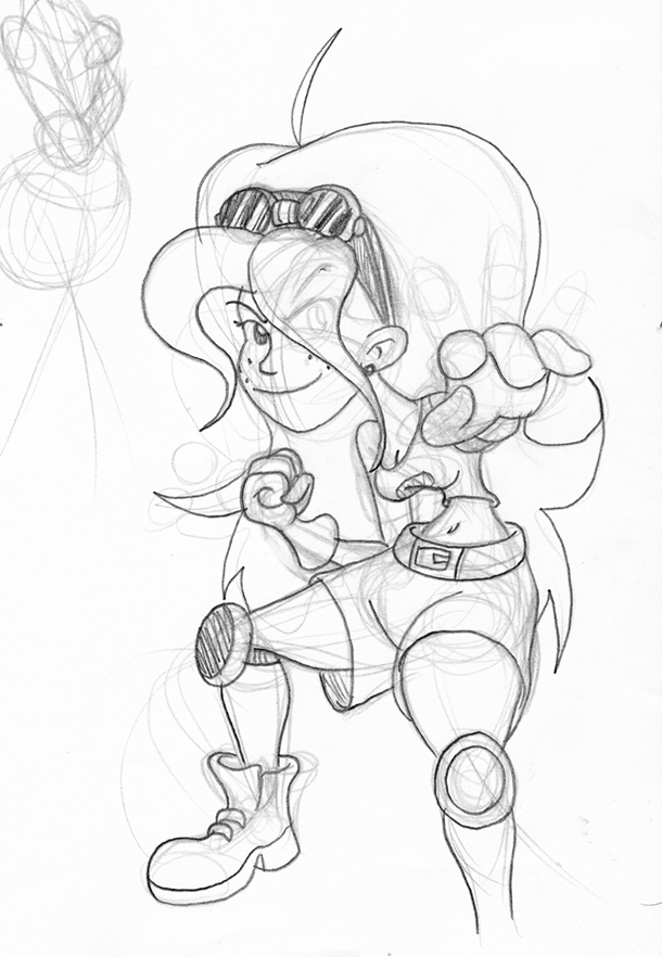 >>34163See, that's helpful, thank you very much.I'm still sort of playing around with the hair, so it still looks a little wonky. Hopefully that'll sort itself out once I get the hang of it.I didn't even notice the thing with the wrist until you said so and I think I've figured out what happened: I did draw the whole arm before the glove but when I went back to canonize my roughwork I strayed from my guidelines for some reason and we ended up with the detached wrist we know and "love" today...I should watch that in the future...