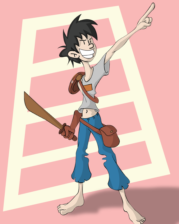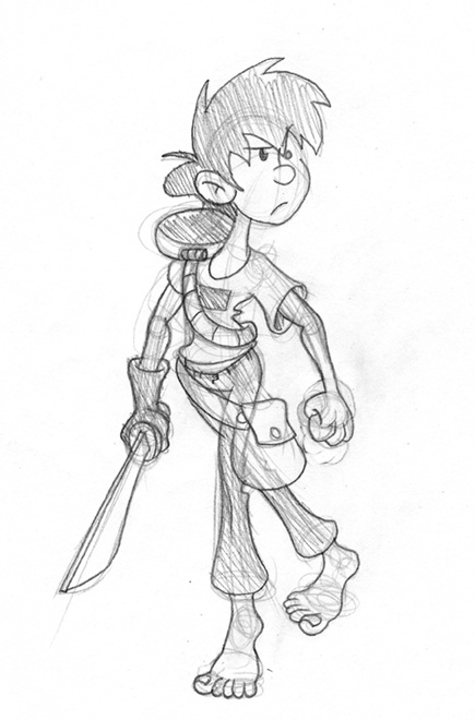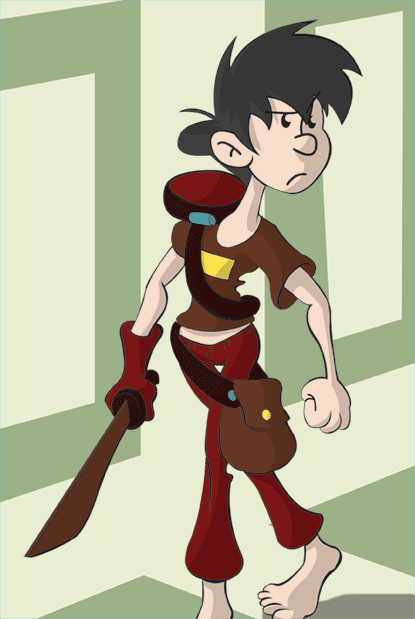 Okay, I think I've finalized a costume/general design for Felix that I like. I've kept the superfluous shoulderpad and glove from my previous attempt but got rid of the torn up shirt. I've made the sleeves less tight and made the body a little squatter.Most importantly I've made his legs skinnier and spaced them farther apart. I'm trying to give him a more reddish/brownish colour scheme so we'll see how that goes...