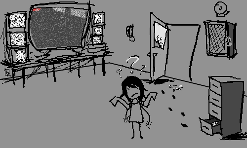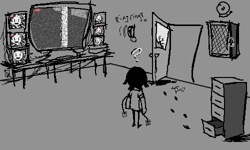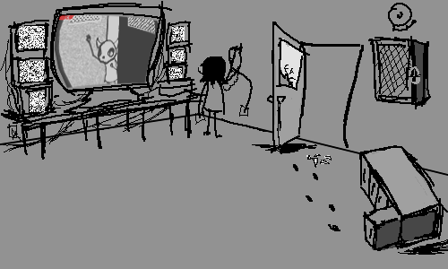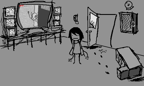 >>29161The screens changed! That can't be good!I reeeally think it's best to get out of this room.>Flee room at all speed!