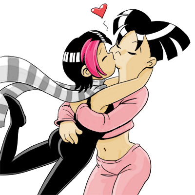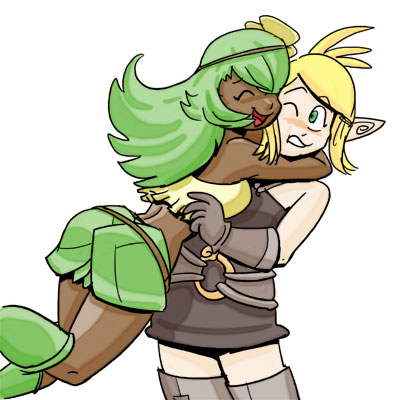 Amalia hugging Evangelyne, for a Drawthread that ended up with a hugging/cuddling theme.