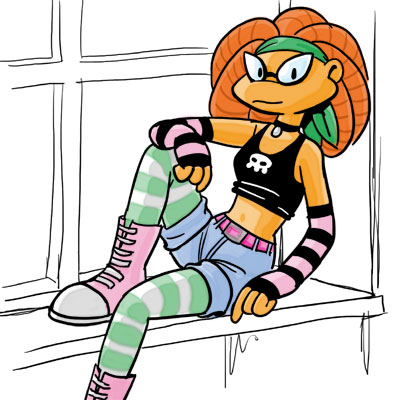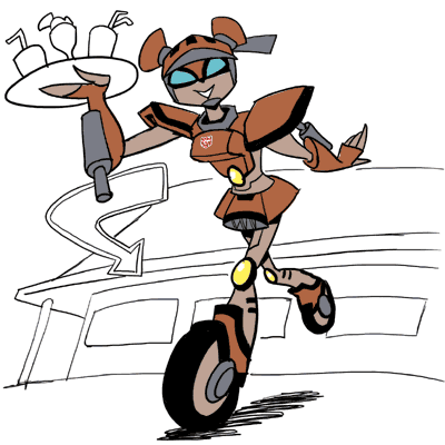 Lickety Split. Not what was requested, but I saw her as a roller diner waitress.And now I see I drew her hand the wrong way round. FFFFFFFFUUUUUUUUU-